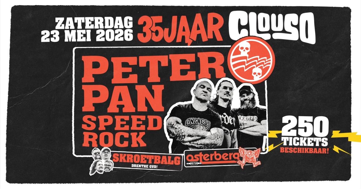 Clouso bestaat in 2026 vijfendertig jaar en dat vieren we met een show van jewelste! Samen met Skroetbalg en Osterberg komt PETER PAN SPEEDROCK de tent vakkundig afbreken!