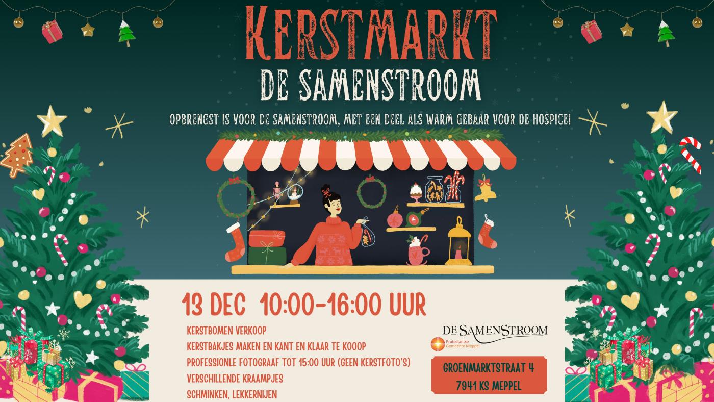 Op zaterdag 13 december 2025 verandert De Samenstroom aan de Groenmarktstraat 4 in Meppel opnieuw in een sfeervolle kerstsfeer. Van 10:00 tot 16:00 uur ben je van harte welkom op de tweede editie van de kerstmarkt.