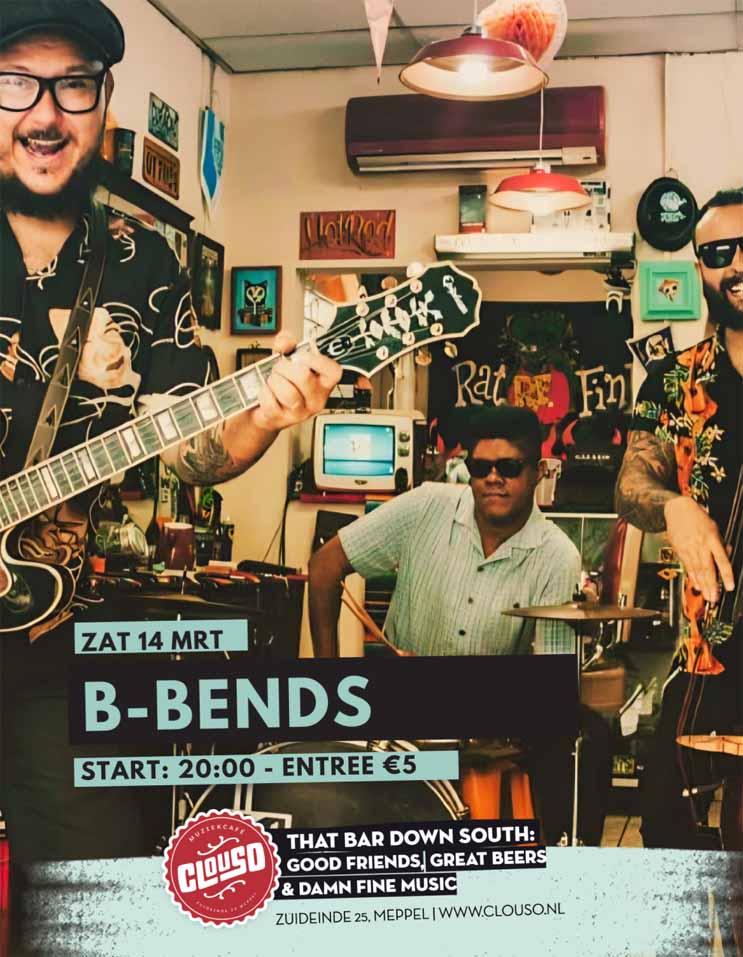 B-Bends speelt op zaterdag 14 maart in Muziekcafé Clouso, vanaf 20.00 uur. Entree is €5.