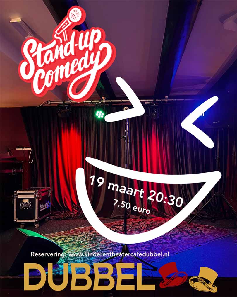 Donderdagavond 19 maart is het Stand-Up Comedy avond bij Theatercafé Dubbel. Een avond vol humor met een mix van opkomend talent en ervaren comedians. Scherp, spontaan en gegarandeerd lachen van begin tot eind.
