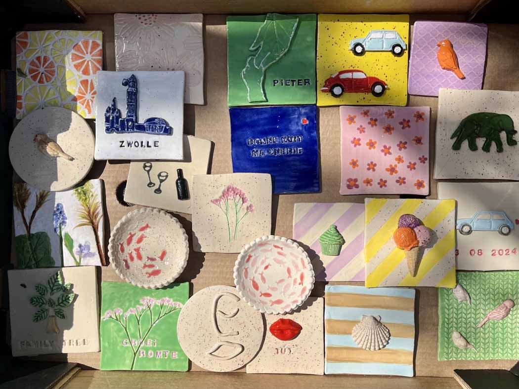 De tegeltjes worden na afloop afgebakken en kun je later ophalen.