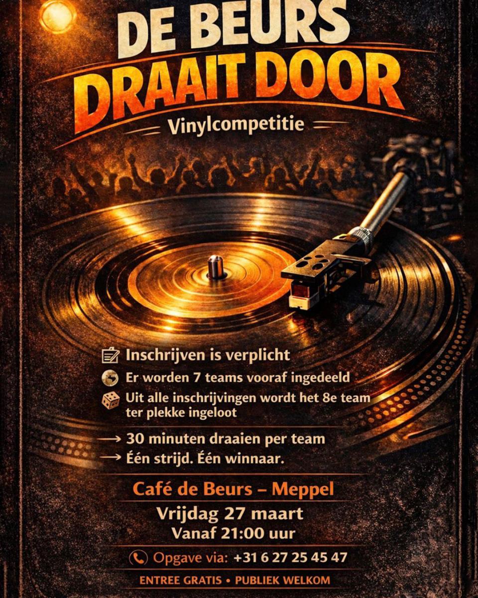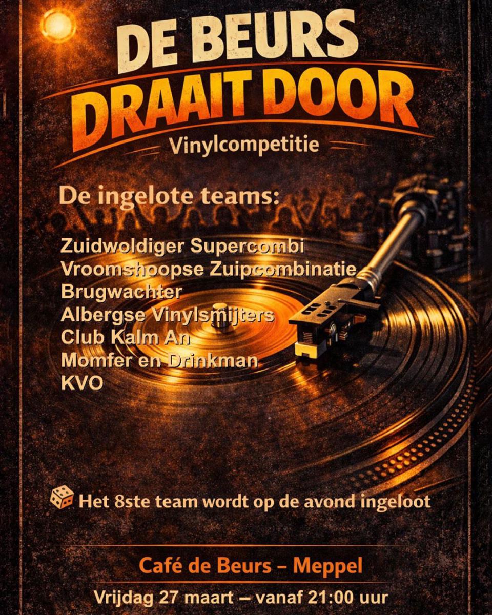 Maar liefst 8 teams nemen het tegen elkaar op tijdens de grote vinylcompetitie, met de beste piratenhitzz. Om 21:30 uur start de strijd en het 8e team wordt ter plekke ingeloot. Meedoen kan via +31 6 27 25 45 47 en de entree is helemaal gratis!