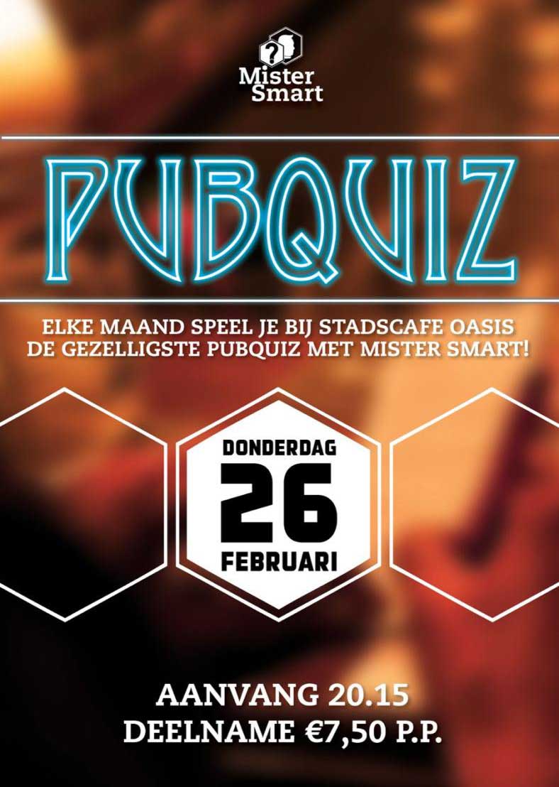 Donderdagavond is het tijd voor de pubquiz: vorm een team, test je kennis en strijd mee om de titel slimste groep van de avond! Start 20:15 uur, entree €7,50 p.p.