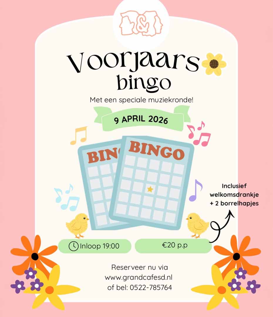 Op donderdag 9 april organiseert Grand café Sons & Daughters een gezellige Voorjaarsbingo met leuke prijzen en een speciale muziekronde.