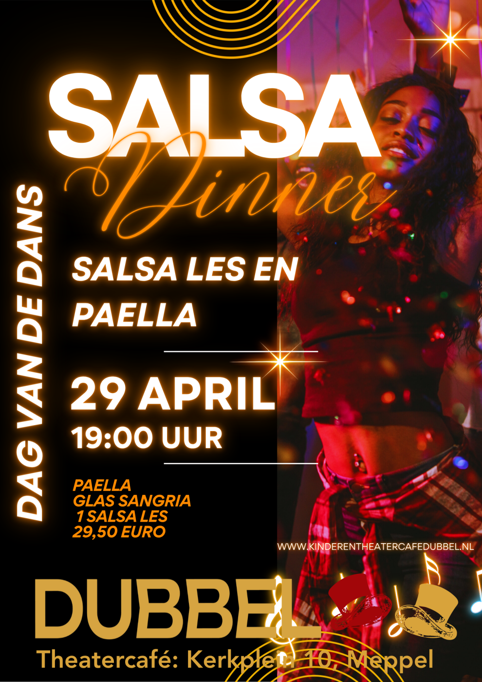 Op deze dag van de dans hebben wij een combinatie van diner en dans, inclusief paella, een glas sangria en een salsa workshop.