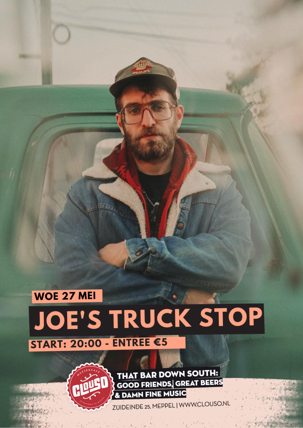Terug van weggeweest en rechtstreeks uit de Ohio River Valley brengt Joe's Truck Stop een rokerige mix van bluegrass, honky tonk en western swing naar Meppel. Na jaren van reizen, spelen en verhalen verzamelen, klinkt zijn muziek als een roadtrip door het Amerikaanse muzieklandschap. Authentiek, sfeervol en puur.