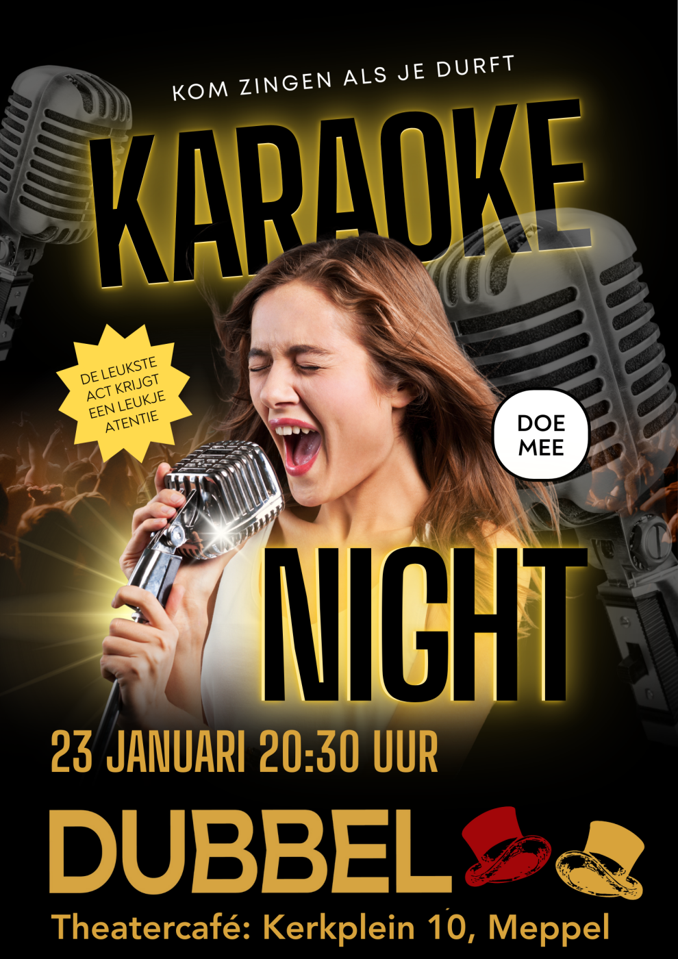 Iedereen is welkom om zijn zangkunsten te vertonen, die dat het leukste doet krijgt een leuke attentie.