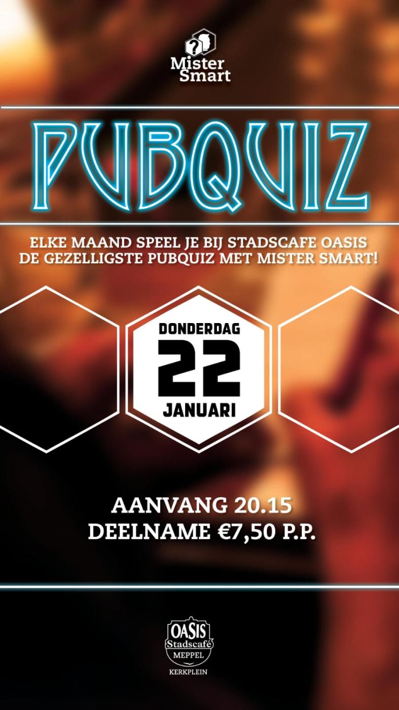 Doe mee met de Pubquiz van Mister Smart bij Stadscafé Oasis!
