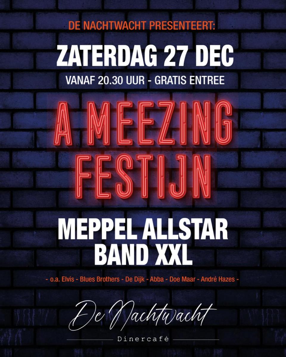 A Meezing Festijn met de MEPPEL ALLSTAR BAND XXL! Lekker dansen en meezingen met de klassiekers van Elvis, Blues Brothers, De Dijk, Abba, Doe Maar, André Hazes en veel meer.
