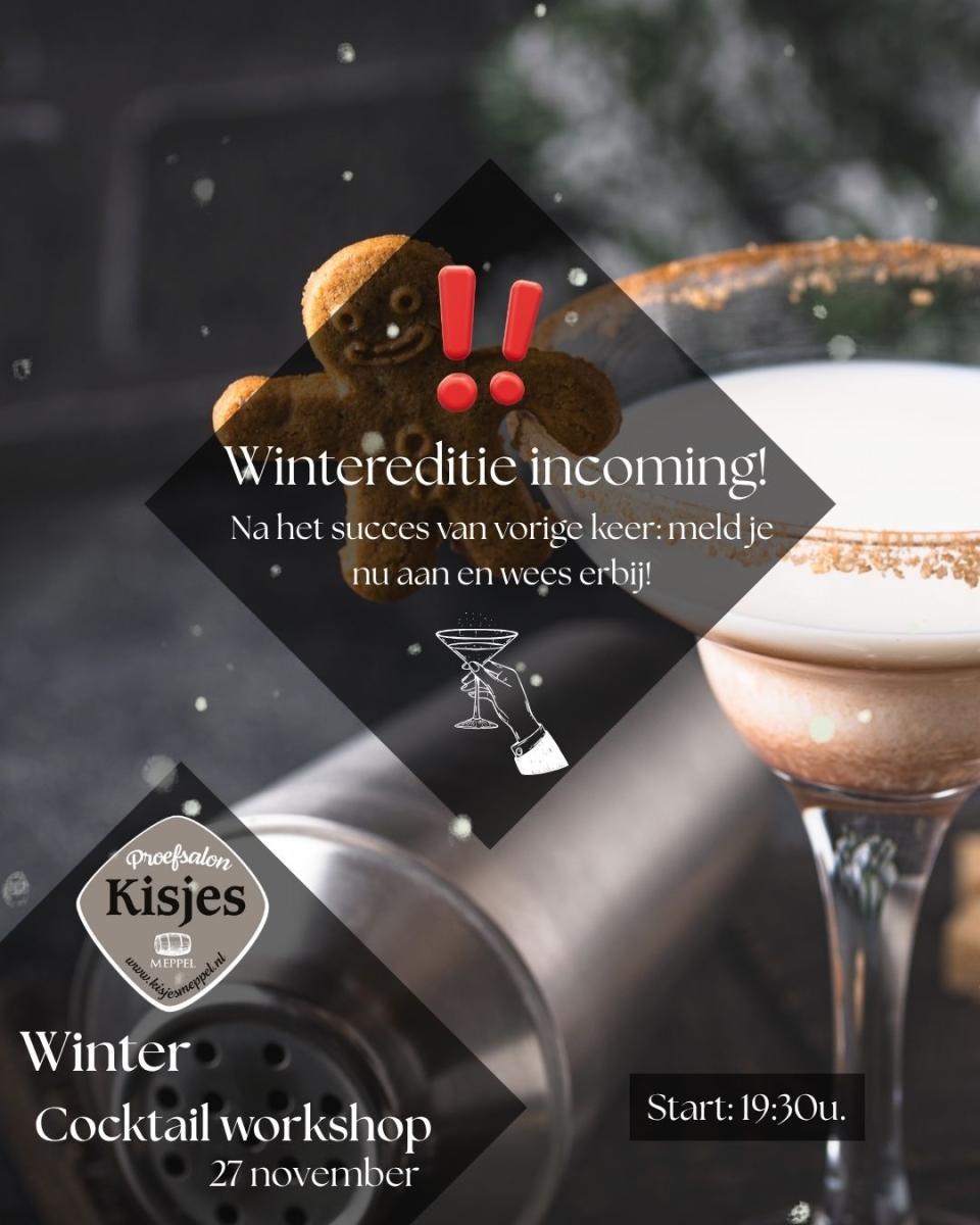 Leer de lekkerste cocktail-smaken kennen tijdens de Winter Cocktail Workshop bij Proefsalon Kisjes. Duik in de wereld van winterse drankjes, ontdek verrassende combinaties en proef zelf hoe je de mooiste cocktails maakt.